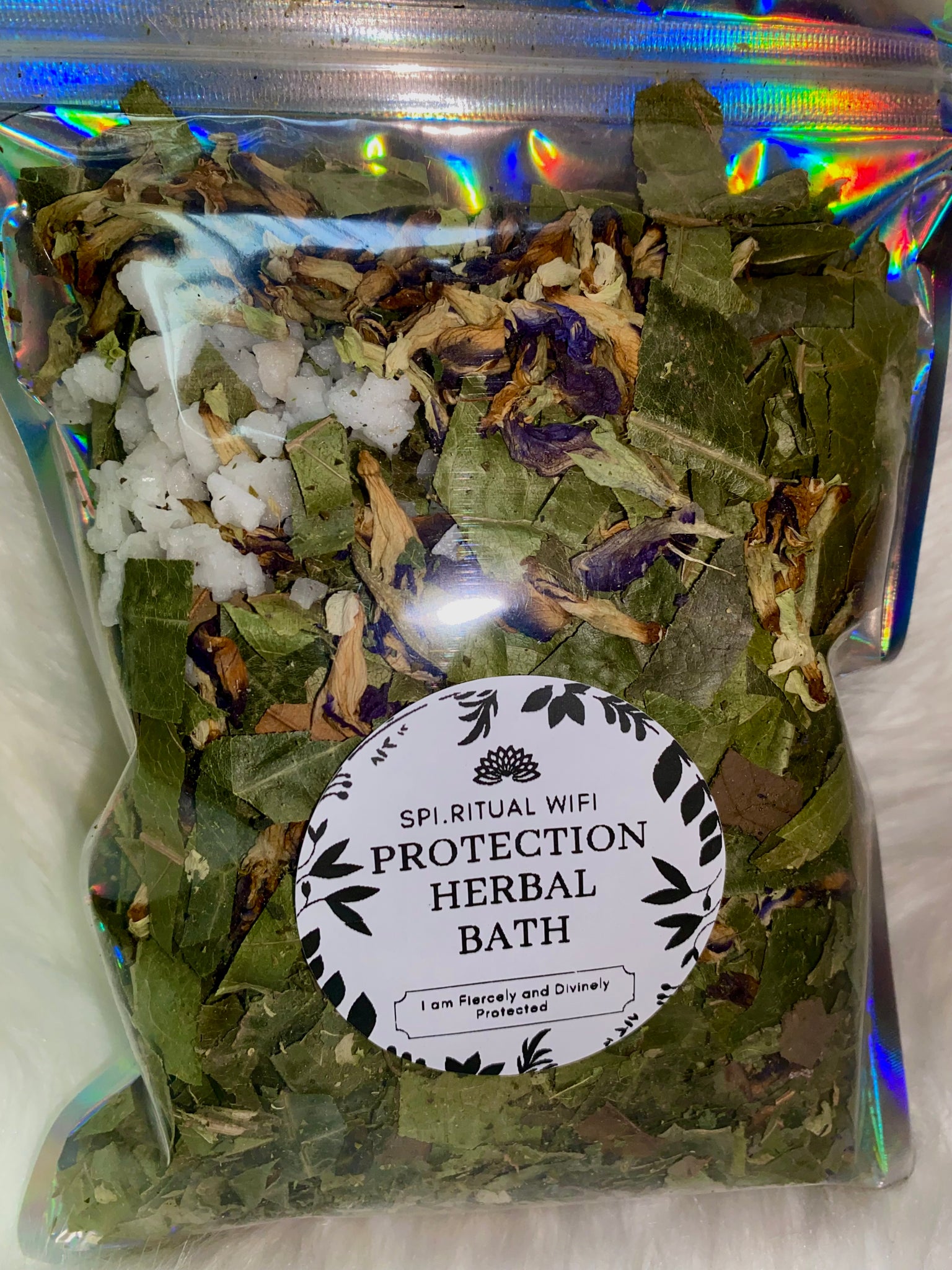 1. Infuse in bathwater: Add a handful of the herb blend to your bathwater for an energetically cleansing and protective bathing experience. As you soak, repeat prayer/mantra for any negative energies to be washed away while feeling yourself enveloped in a shield of protection. you can also boil the herbs, strain water and add to your bathwater.